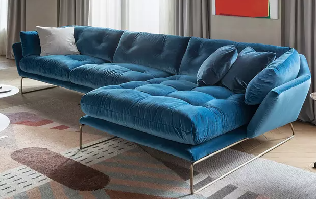 Saba Диван с оттоманкой  New York  LARIO 1403 TOP 320*165*75 см.,+3 подушки 50*50 см.,цвет горчичный, ножки блестящая латунь