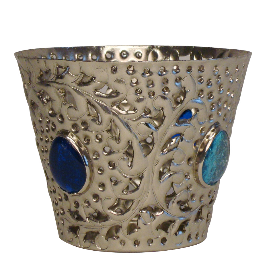 LL Candle holder 12x10cm DAMIAN nickel blue ston